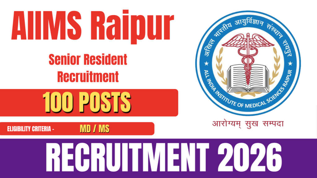 All India Institute of Medical Sciences (AIIMS), Raipur has released an official notification for the recruitment of 100 Senior Resident posts. Candidates holding DNB, PG Diploma, MS/ MD degrees are eligible to apply. All interested candidates can apply online by visiting the official website of AIIMS Raipur. The application process for AIIMS Raipur Senior Resident … Continue reading AIIMS Raipur Senior Resident Recruitment 2026- How to Apply