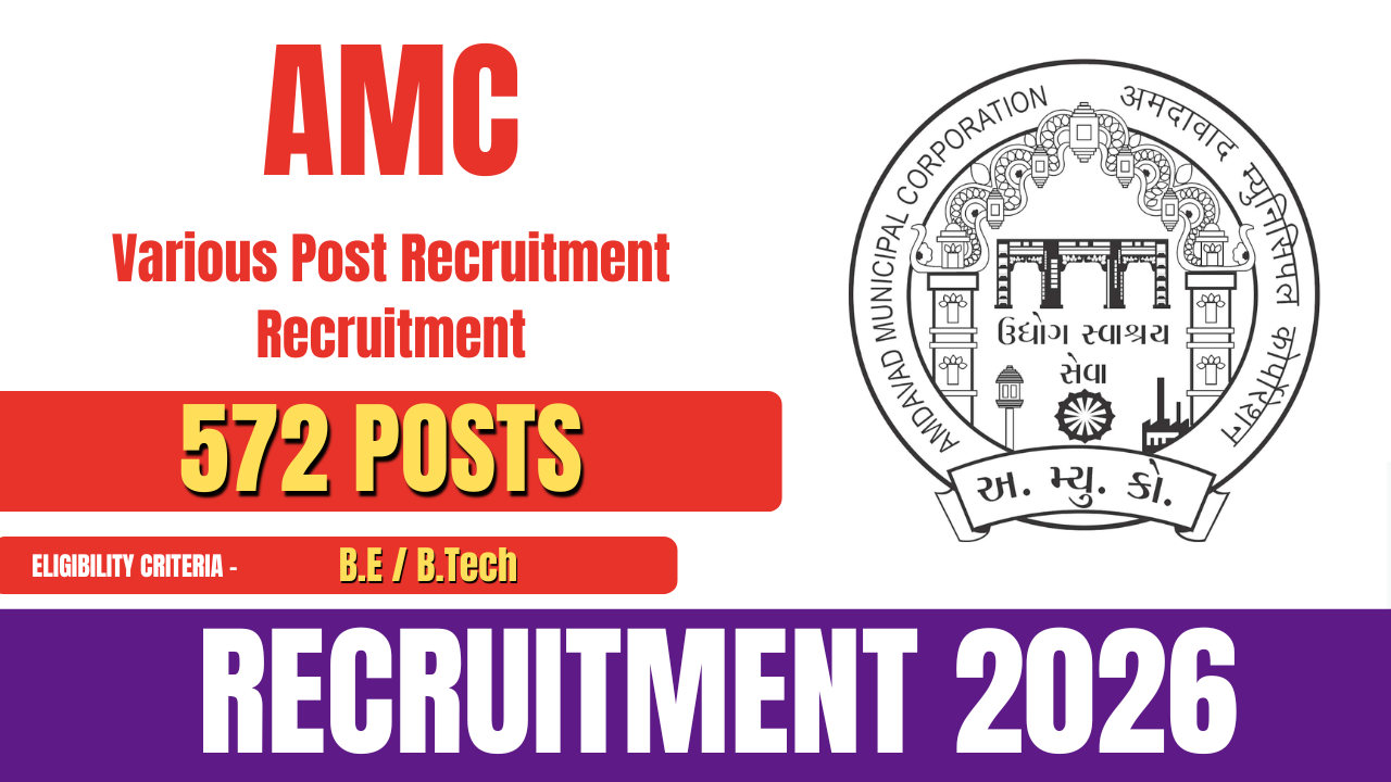 The Ahmedabad Municipal Corporation (AMC) has released the official notification for AMC Various Post Recruitment 2026 to fill 572 vacancies for posts including Assistant Engineer, Assistant City Engineer, and other positions.