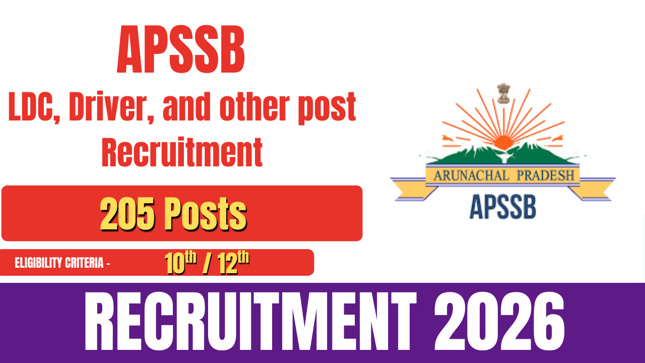 The Arunachal Pradesh Staff Selection Board (APSSB) has released an official notification for APSSB Recruitment 2026. The recruitment is being conducted for various posts, including Lower Division Clerk (LDC), Driver, and other positions. A total of 205 vacancies are available under this recruitment drive.