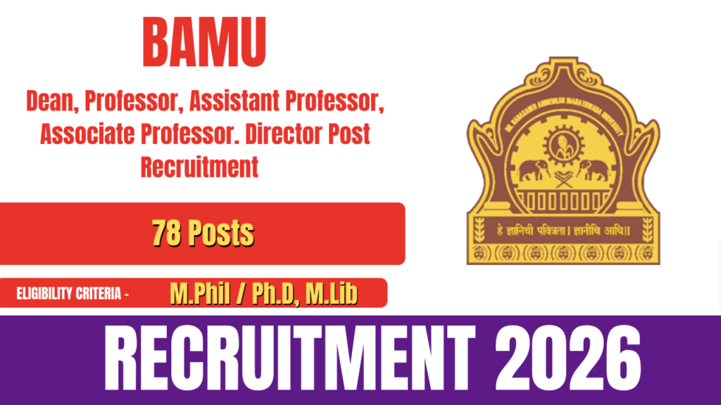 Dr. Babasaheb Ambedkar Marathwada University has released an official notification for BAMU Recruitment 2026. The recruitment drive is being conducted to fill 78 vacancies for the posts of Dean, Professor, Associate Professor, Assistant Professor, and Director. Eligible and interested candidates can apply online through the official BAMU website.
