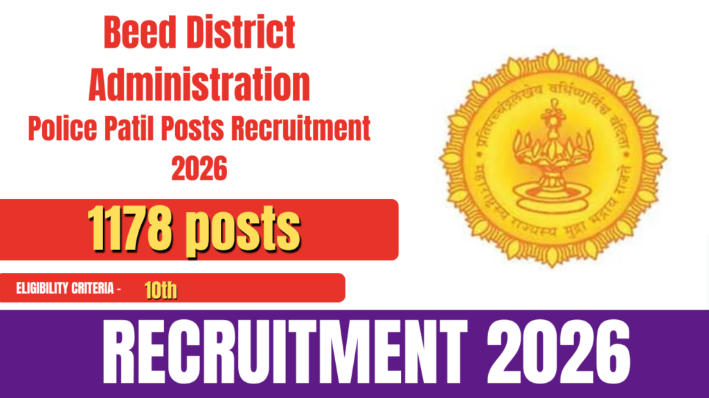 Beed District Administration has released an official notification for the recruitment of Police Patil posts. A total of 1,178 vacancies have been announced under this recruitment. Eligible local residents who have passed Class 10 can apply online through the official website of the Beed District Administration. The online application process for Beed District Police Patil … Continue reading Beed District Police Patil Recruitment 2026- How to Apply