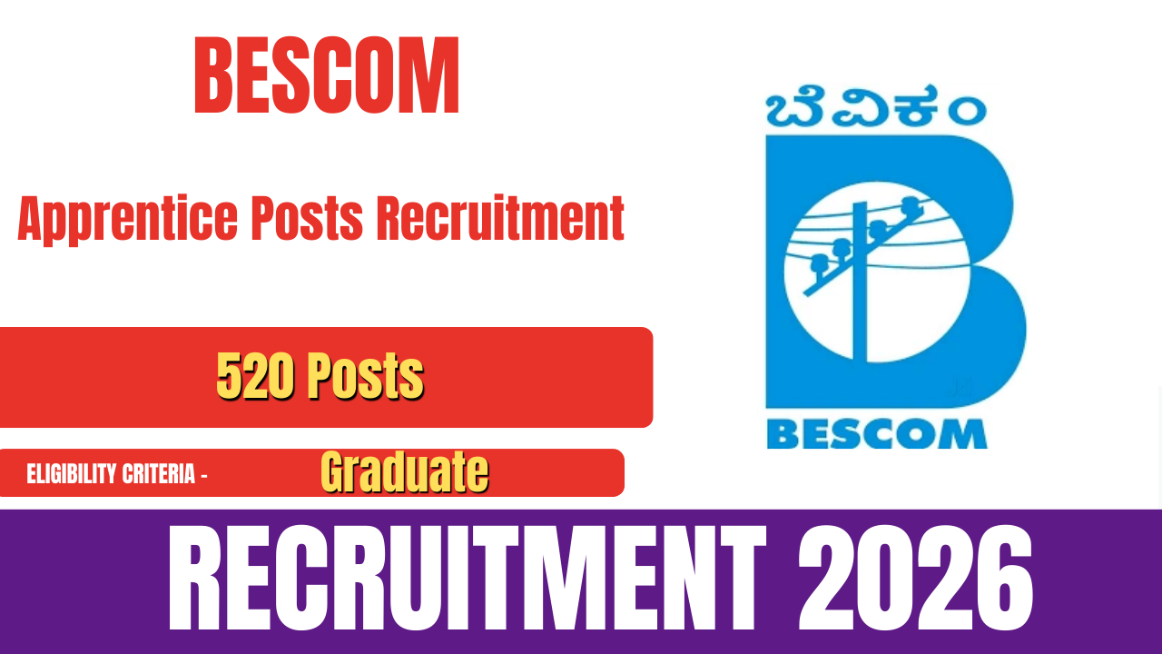 Bangalore Electricity Supply Company (BESCOM) has issued the official notification for BESCOM Recruitment 2026 to fill 520 Apprentice vacancies. Candidates who meet the required eligibility criteria can apply online through the official BESCOM website.