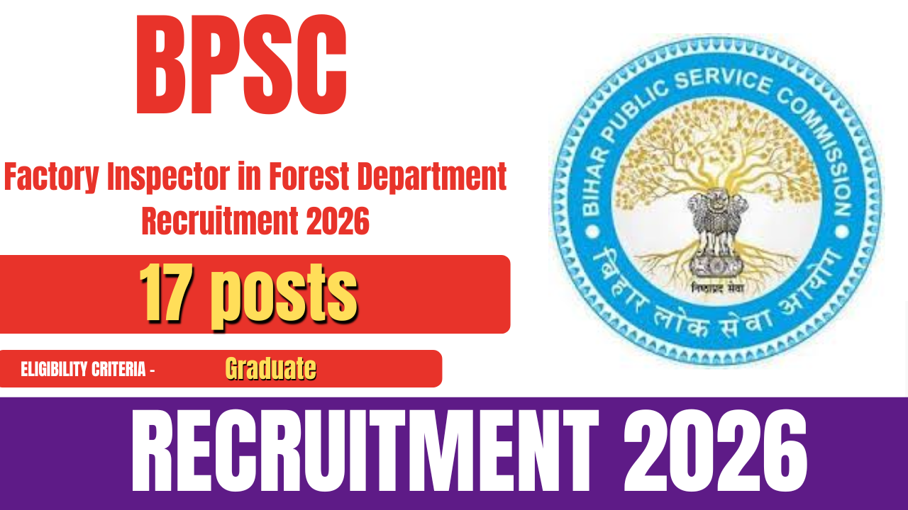 The Bihar Public Service Commission (BPSC) has released the official notification for the recruitment of Factory Inspector posts in the Forest Department. A total of 17 vacancies have been announced under this recruitment drive. Eligible and interested candidates can apply online through the official BPSC website.