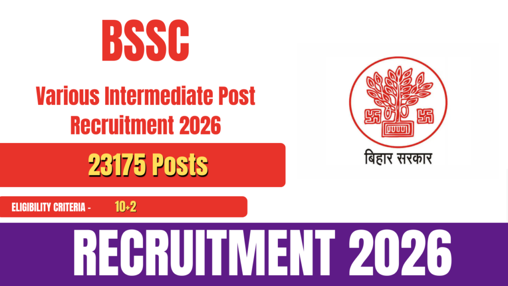 The Bihar Staff Selection Commission (BSSC) has released the official notification for the Inter Level Recruitment 2025, inviting applications for a wide range of Intermediate-level posts. This recruitment drive aims to fill 23,175 vacancies across various departments. Eligible and interested candidates can submit their applications online through the official BSSC website. The online application process … Continue reading Bihar BSSC Inter Level Recruitment 2025 (23,175 Posts)- How To Apply (Date Extended)