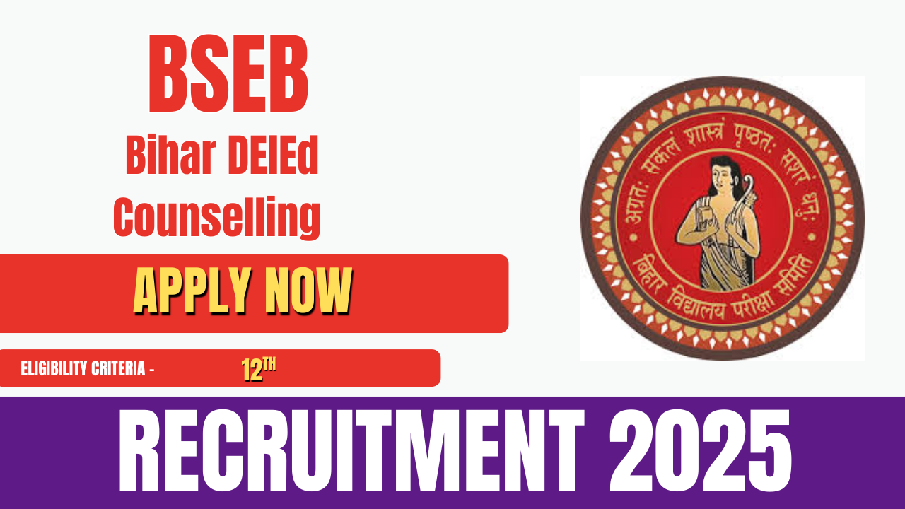 The Bihar School Education Board (BSEB) has released the official notification for the online Common Application Form (CAF) for the D.El.Ed Admission Counselling 2025 for the two-year Diploma in Elementary Education programme (Session 2025–27). After the online counselling process, the first seat allotment list will be published on 11 December 2025, and candidates can check their allotment using their registered User ID and Password.