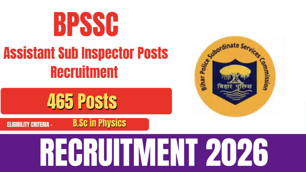 The Bihar Police Subordinate Services Commission (BPSSC) has released the official notification for the Bihar Police Assistant Sub Inspector Recruitment 2026. A total of 462 vacancies have been announced for the Assistant Sub Inspector posts. Eligible and interested candidates can apply online through the official BPSSC website. The online application process for Bihar Police ASI … Continue reading Bihar Police Assistant Sub Inspector Recruitment 2026- How to Apply