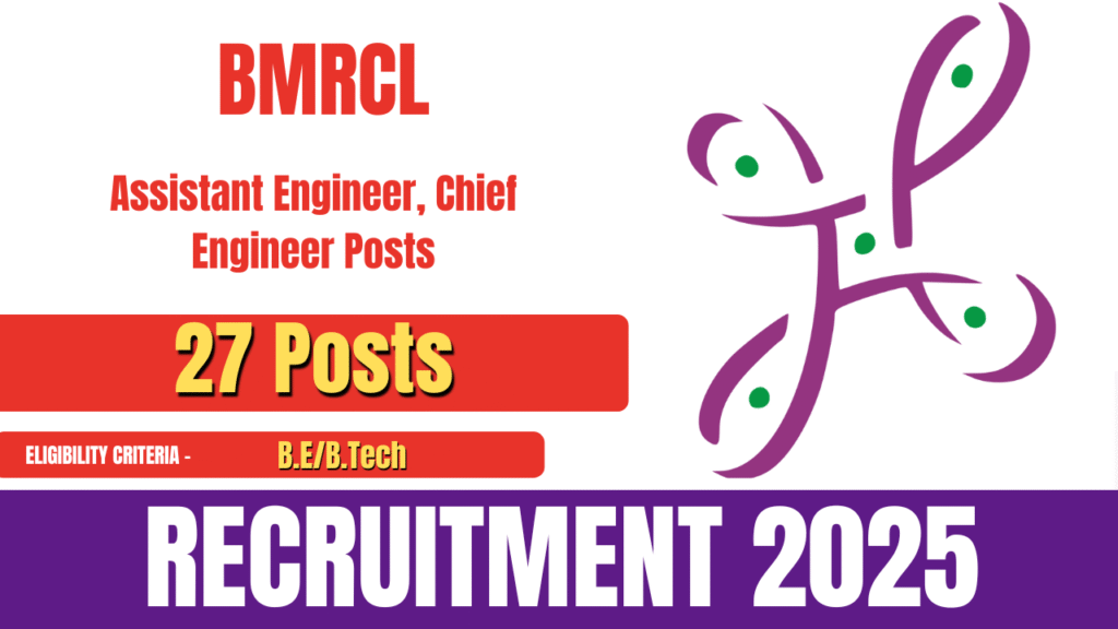 Bangalore Metro Rail Corporation Limited (BMRCL) has released the official notification for the recruitment of Chief Engineer, Deputy Chief Engineer, Executive Engineer, Assistant Executive Engineer, and Assistant Engineer positions. A total of 27 vacancies have been announced. All eligible and interested candidates can apply online through the official BMRCL website. The online application process for … Continue reading BMRCL Recruitment 2025- Apply For Assistant Engineer, Chief Engineer Posts