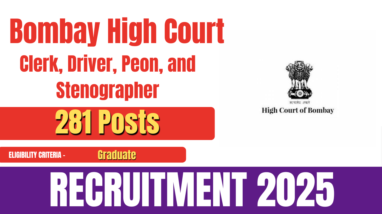 The Bombay High Court has released an official notification for the recruitment of Clerk, Driver, Peon, and Stenographer posts. A total of 281 vacancies have been announced under this recruitment drive.