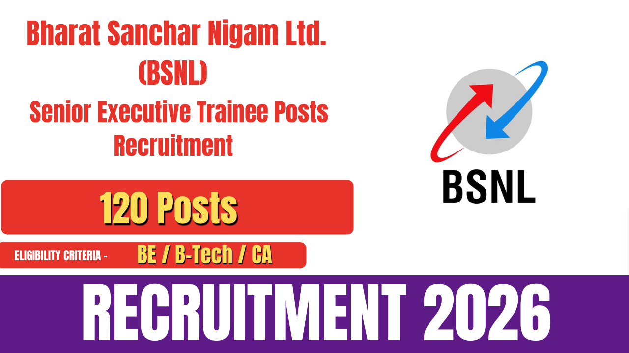 Bharat Sanchar Nigam Limited (BSNL) has released an official notification for BSNL Senior Executive Trainee (SET) Recruitment 2026. This recruitment drive is being conducted for 120 Senior Executive Trainee posts.