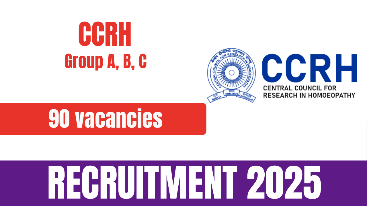 The Central Council for Research in Homeopathy (CCRH), New Delhi has released the official notification for the CCRH Group A, B, and C Recruitment 2025. The recruitment drive aims to fill 90 vacancies for various posts, including Staff Nurse, ARO, MLT, JMLT, and Junior Stenographer. Eligible and interested candidates can apply online through the official website of CCRH.