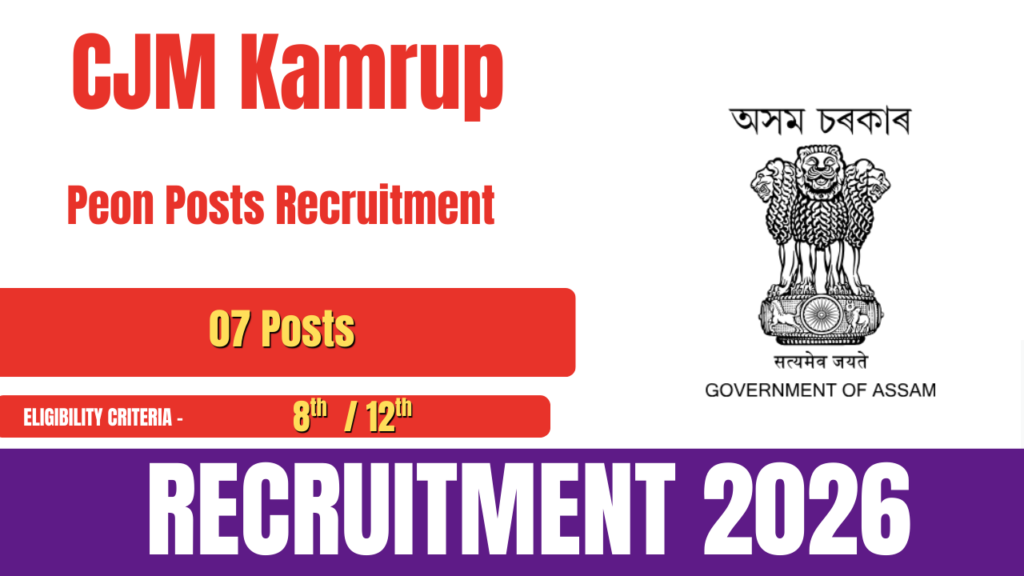 The Chief Judicial Magistrate Kamrup (CJM Kamrup) has released an official notification for CJM Kamrup Peon Recruitment 2026. The recruitment drive is being conducted for the post of Peon, with a total of 07 vacancies announced. Candidates who have passed Class 8th are eligible to apply. Interested and eligible applicants can submit their applications through … Continue reading CJM kamrup Peon Recruitment 2026- How to Apply Offline