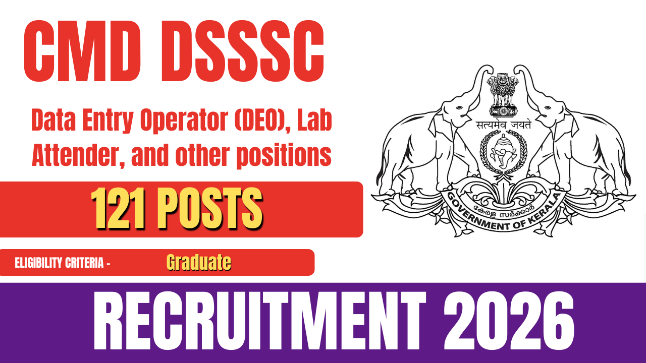 The Department of Soil Survey and Soil Conservation (CMD DSSSC), Kerala has released the official notification for CMD DSSSC Kerala Recruitment 2026. This recruitment drive aims to fill 121 vacancies for the posts of Data Entry Operator (DEO), Lab Attender, and other positions.