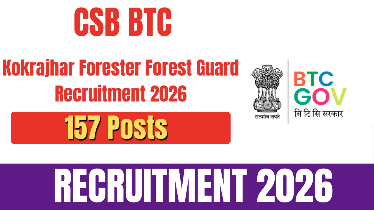 Central Selection Board (CSB), Bodoland Territorial Council (BTC), Kokrajhar, Assam (CSB BTC Kokrajhar) CSB BTC Kokrajhar Forester Forest Guard Recruitment 2026, Eligibility, Age Limit, Fees, Selection, Last Date Apply Online, CSB BTC Kokrajhar has released the official notification for the recruitment of Forester I and Forest Guard posts. This recruitment drive is open for a total of 157 posts. Eligible and interested candidates can submit their application form online through the official CSB BTC Kokrajhar website.