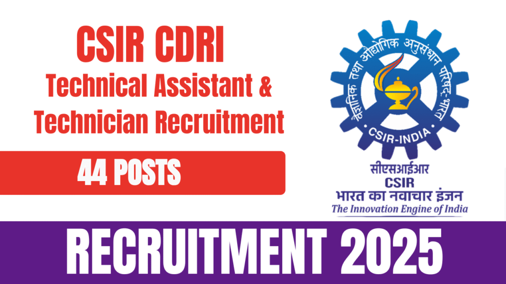 CSIR–CDRI has released the official notification for the recruitment of Technical Assistants and Technicians, offering a total of 44 posts. Eligible and interested candidates can submit their applications online by visiting the official CDRI website. The application process for CSIR CDRI Technical Assistant & Technician Recruitment 2025 has begun on 25 November 2025, and the … Continue reading CSIR CDRI Technical Assistant & Technician Recruitment 2025