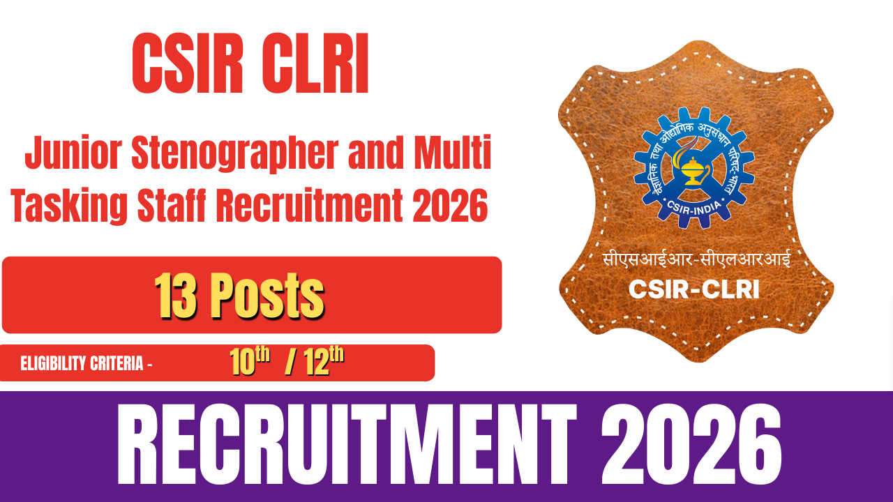 The Central Leather Research Institute (CSIR-CLRI) has released an official notification for CSIR CLRI Recruitment 2026. The recruitment is being conducted for the posts of Junior Stenographer, Junior Secretariat Assistant (JSA), and Multi-Tasking Staff (MTS). Candidates who have passed 10th or 12th class are eligible to apply.