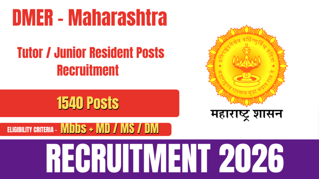 DMER Maharashtra Tutors/ Junior Resident Recruitment 2026 (1540 Posts)
