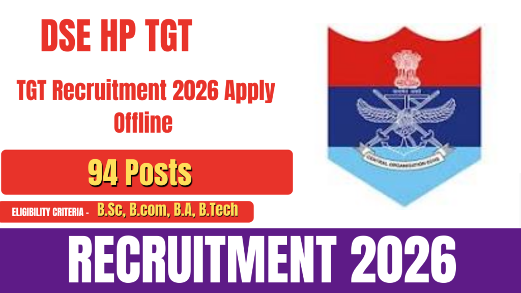 Directorate of School Education, Himachal Pradesh (DSE HP) DSE HP TGT Recruitment 2026, Eligibility, Age Limit, Salary, Selection Process, Apply Offline, DSE HP has released an official notification for the recruitment of TGT (Trained Graduate Teacher) positions. There are a total of 94 vacancies. All eligible and interested candidates can check the notification on the … Continue reading DSE HP TGT Recruitment 2026- How to Apply Offline