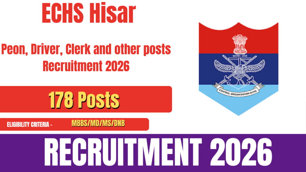Ex-Servicemen Contributory Health Scheme (ECHS), Hisar has released an official notification for ECHS Hisar Recruitment 2026 to fill various posts including Peon, Driver, Clerk, and other positions. A total of 178 vacancies are available under this recruitment. Eligible and interested candidates can apply offline by referring to the official notification. The application process for ECHS … Continue reading ECHS Hisar Recruitment 2026- How to Apply Offline