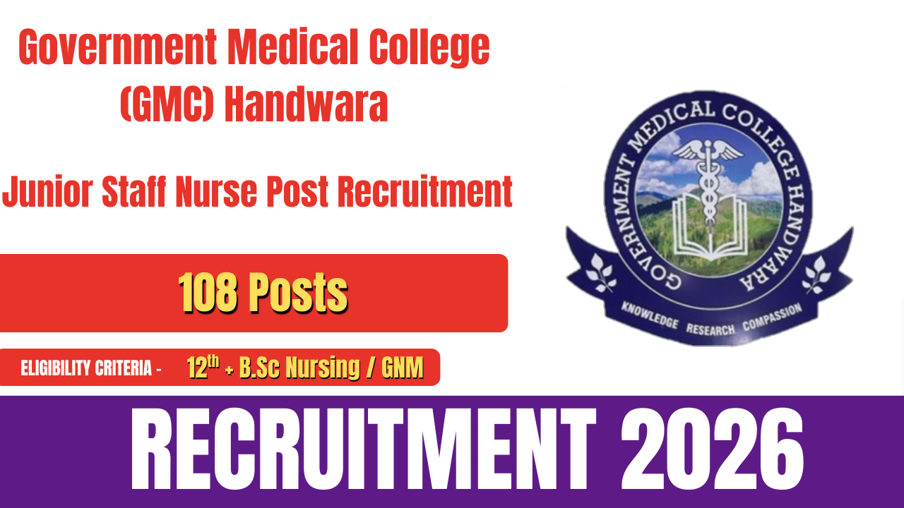 Government Medical College (GMC), Handwara has released an official notification for the recruitment of Junior Staff Nurse (Non-Gazetted Technical) posts on an academic arrangement basis. A total of 108 vacancies have been announced under this recruitment drive. Eligible and interested candidates can apply online through the official GMC website.