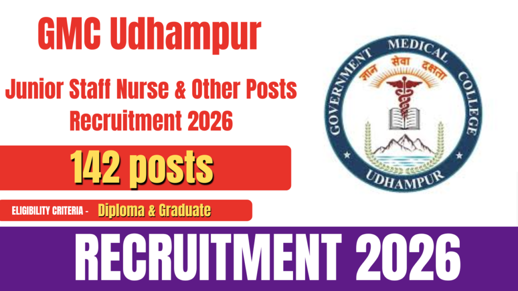 GMC Udhampur Recruitment 2026- Apply for Junior Staff Nurse & Other Posts