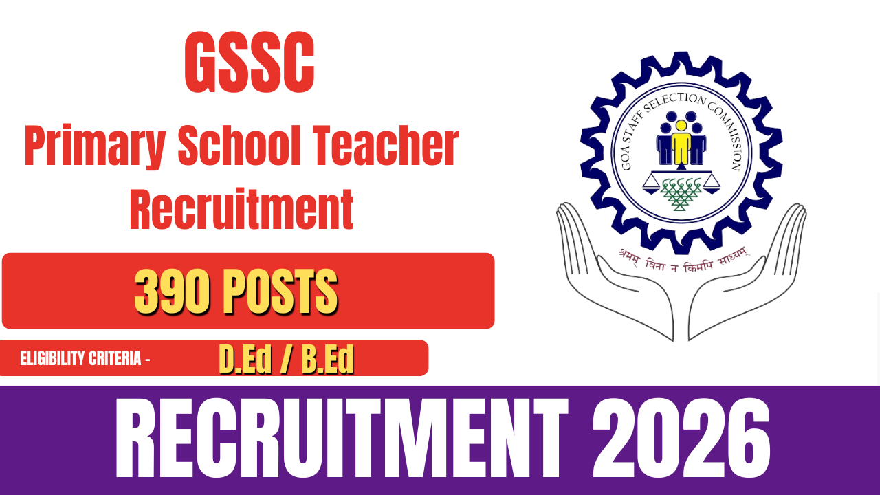 The Goa Staff Selection Commission (GSSC) has released an official notification for the recruitment of Primary School Teacher posts in government schools. A total of 390 vacancies are available under this recruitment drive. Eligible and interested candidates can apply online through the official website of GSSC.