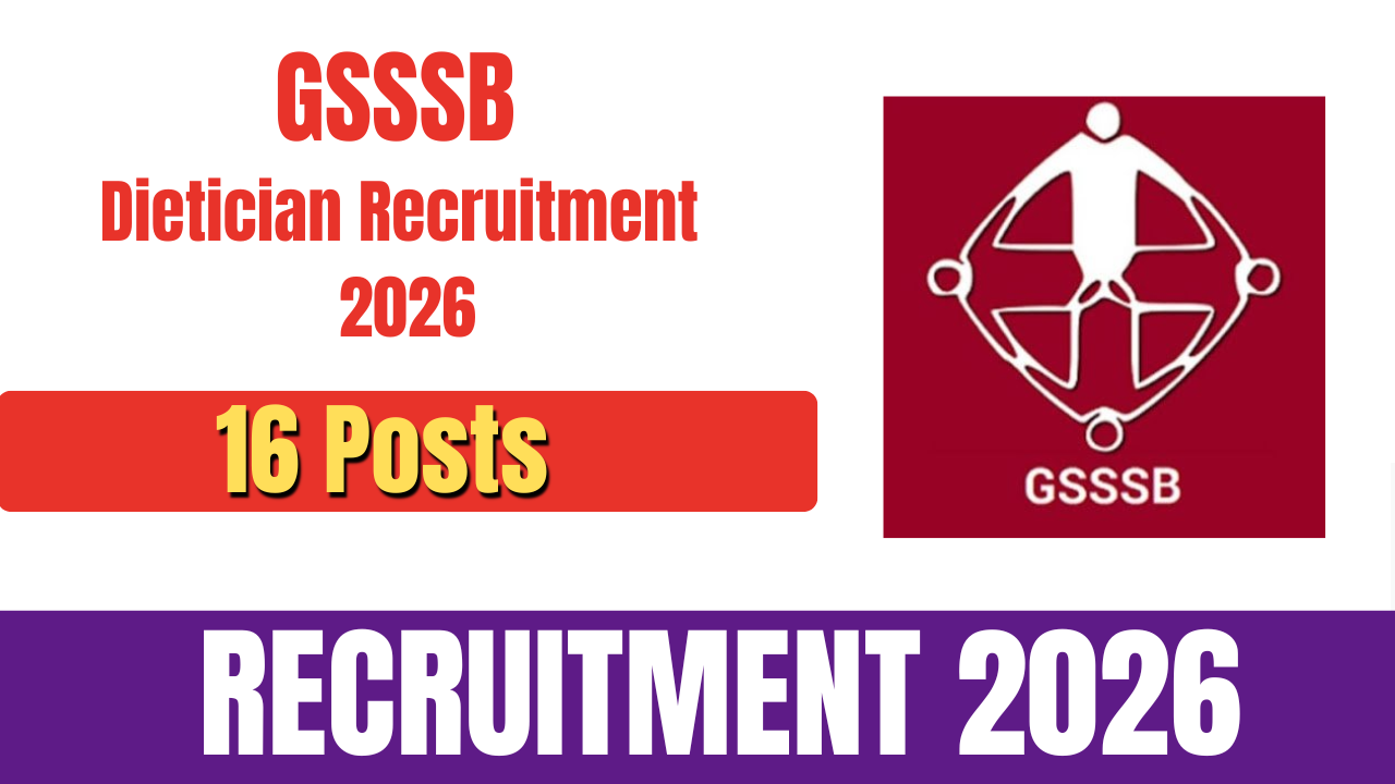 Gujarat Subordinate Services Selection Board (GSSSB) has released the official notification for the recruitment of Dietician, Class-3 posts. There are a total of 16 posts.