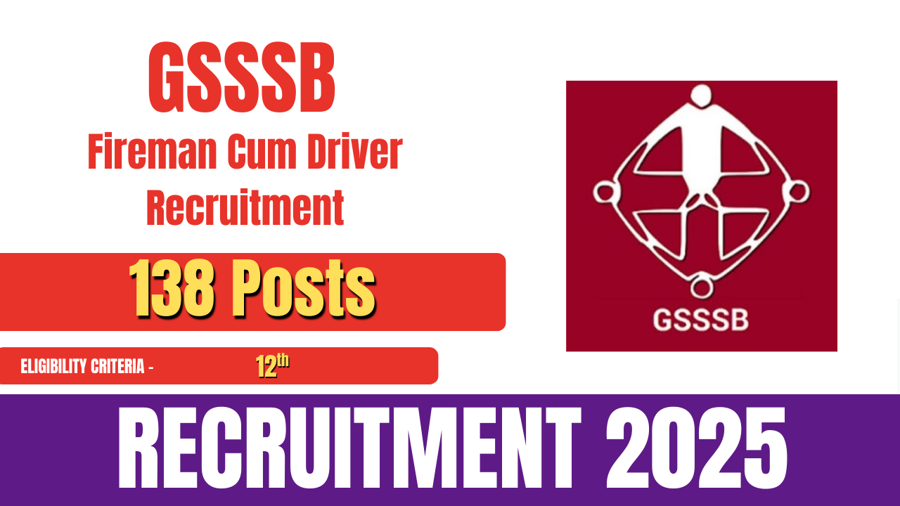 The Gujarat Subordinate Services Selection Board (GSSSB) has released the official notification for the recruitment of Fireman Cum Driver posts. A total of 138 vacancies are available under this recruitment drive.