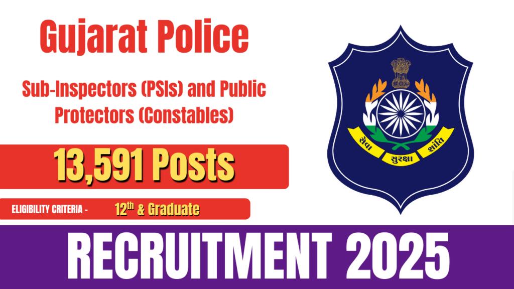 The Gujarat Police Recruitment Board (GPRB) has released the official notification for the recruitment of Sub-Inspectors (PSIs) and Public Protectors (Constables). This recruitment drive will fill a total of 13,591 posts. All eligible and interested candidates can apply online through the official GPRB website. The application process for Gujarat Police Recruitment 2025 will start on … Continue reading Gujarat Police Recruitment 2025 (13,591 Posts)- How To Apply