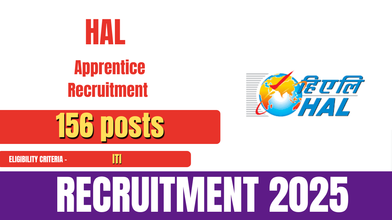 Hindustan Aeronautics Limited (HAL) has issued the official notification for the recruitment of Operator posts under the HAL Apprentice Recruitment 2025. A total of 156 vacancies have been announced. Eligible and interested candidates can submit their applications online through the official HAL website.