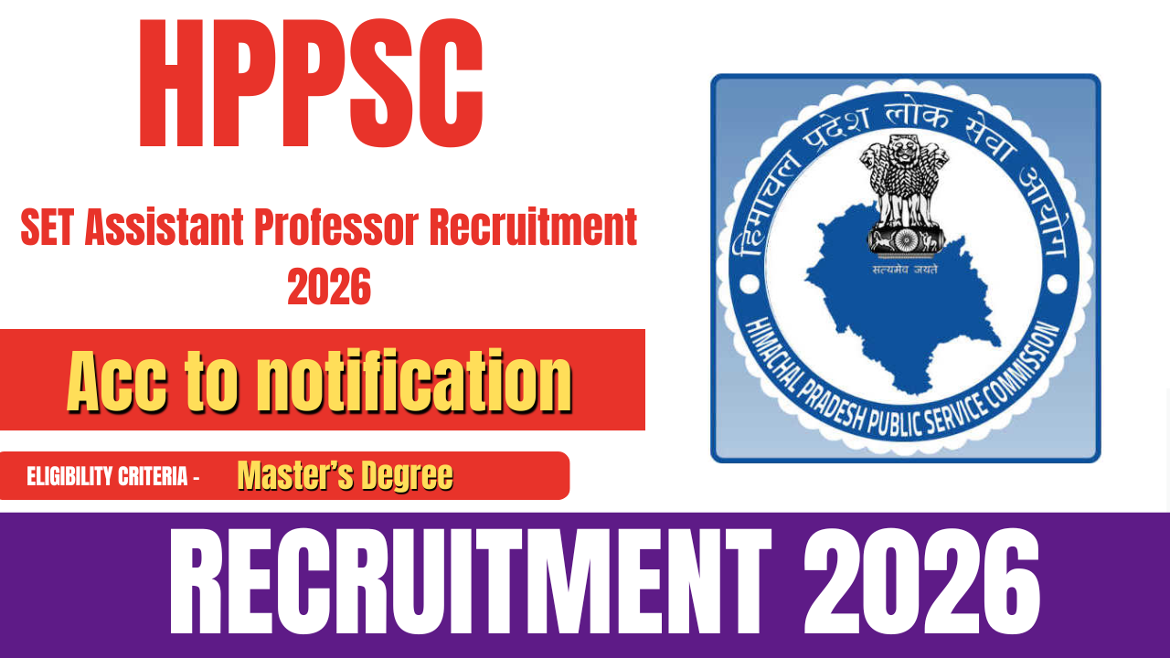 Himachal Pradesh Public Service Commission (HPPSC) has released the official notification for HPPSC SET Recruitment 2026 for the posts of Assistant Professor in universities and colleges across Himachal Pradesh. Candidates possessing a postgraduate degree are eligible to apply. Interested and eligible applicants can submit their applications online through the official HPPSC website.
