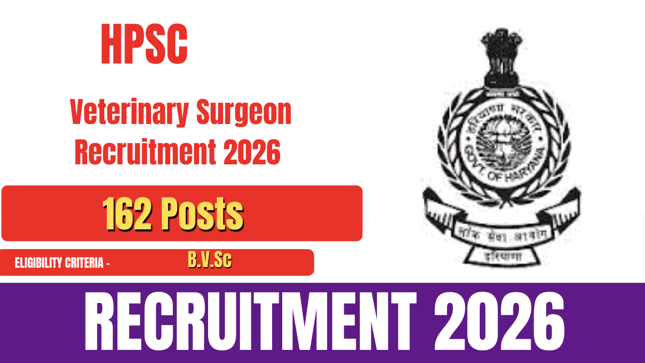 Haryana Public Service Commission (HPSC) HPSC Veterinary Surgeon Recruitment 2026, Eligibility, Age Limit Fees, Selection, Last Date, Salary, Apply Online, HPSC has released the official notification for the recruitment of 162 Veterinary Surgeon posts. Candidates with a B.V.Sc. qualification are eligible to apply. All interested candidates can apply online by visiting the official website of HPSC.