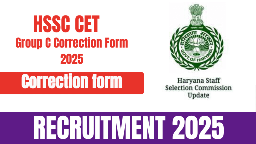 HSSC CET Group C Correction Form 2025-Apply Online Haryana Staff Selection Commission (HSSC) has released the Correction Notice for the CET Group C Examination 2025 on its official website. The examination was conducted on 26th and 27th July 2025, and the last date to submit the application form was 14th June 2025. Candidates who have … Continue reading HSSC CET Group C Correction Form 2025-Apply Online