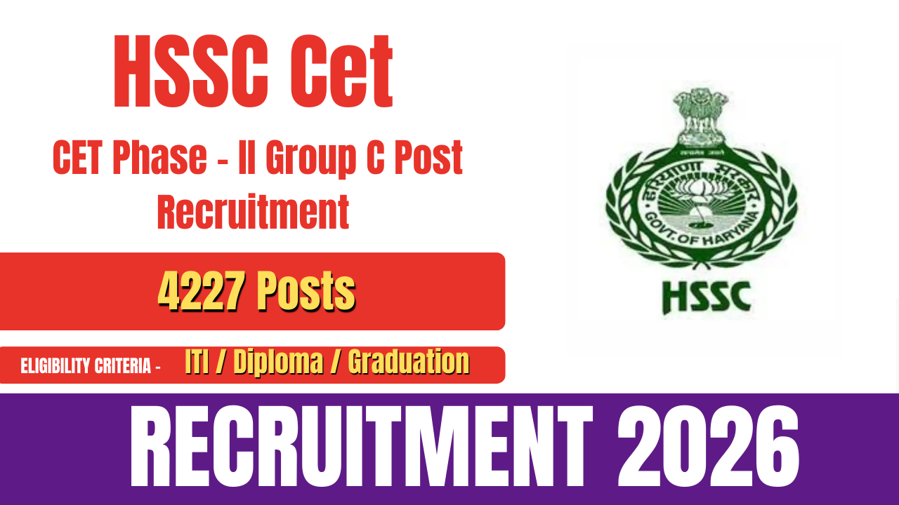 The Haryana Staff Selection Commission (HSSC) has released the official notification for HSSC CET Phase-II Group C Recruitment 2026. A total of 4,227 vacancies have been announced under this recruitment drive. Eligible candidates can apply online through the official HSSC website.