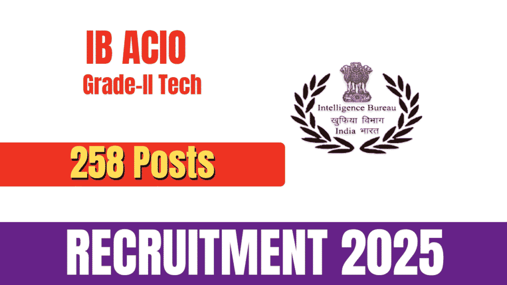 IB ACIO Grade-II Tech Recruitment 2025: Notification Released for 258 Posts The Intelligence Bureau (IB) has released the official notification for the recruitment of Assistant Central Intelligence Officer (ACIO) Grade-II/Technology. This recruitment drive will fill a total of 258 vacancies across various technical disciplines. All eligible and interested candidates can apply online through the official … Continue reading IB ACIO Grade-II Tech Recruitment 2025- How To Apply
