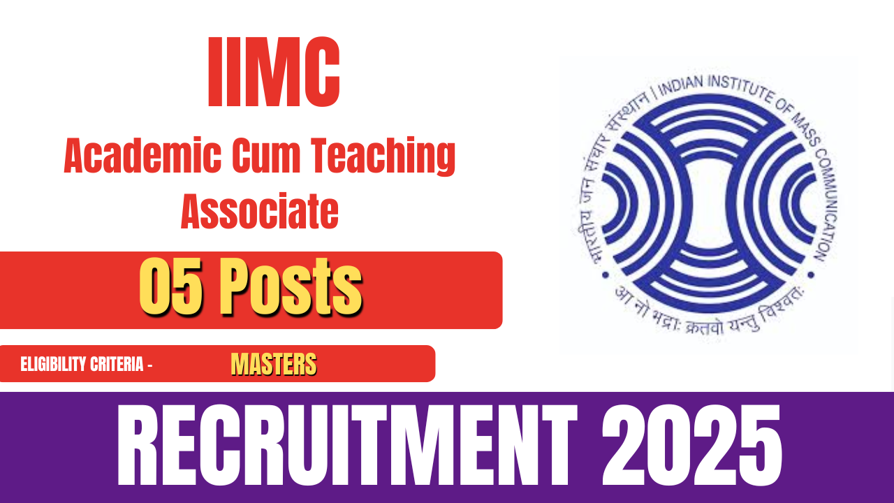 Indian Institute of Mass Communication (IIMC) has released the official notification for Academic Cum Teaching Associate Recruitment 2025. A total of 05 posts are available under this recruitment drive.