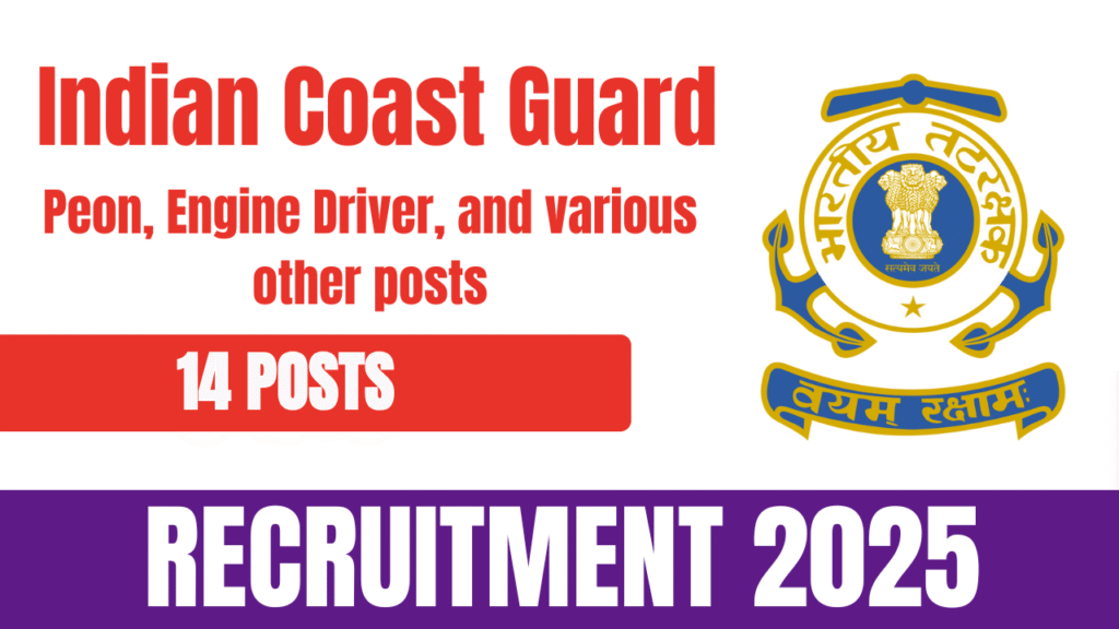 The Indian Coast Guard has released an official notification for the recruitment of Peon, Engine Driver, and various other posts. This recruitment drive includes a total of 14 vacancies. Eligible and interested candidates can download the notification from the official website and submit their applications through offline mode.
