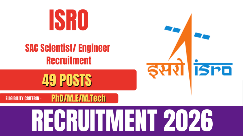 The Space Applications Centre (SAC), Ahmedabad, a unit of the Indian Space Research Organisation (ISRO), has released the official notification for ISRO SAC Scientist/Engineer Recruitment 2026. This recruitment drive aims to fill 49 Scientist/Engineer vacancies. Eligible and interested candidates can submit their online application forms by visiting the official SAC website at https://www.sac.gov.in/. The online application process began on 23 January 2026 and will … Continue reading ISRO SAC Scientist/ Engineer Recruitment 2026- How To Apply