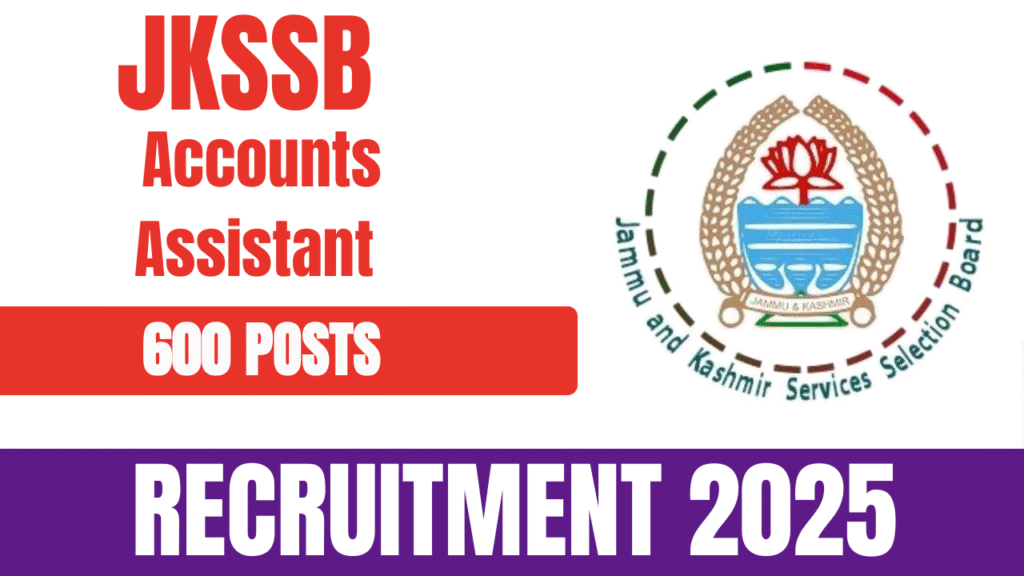 Jammu and Kashmir Services Selection Board (JKSSB) has issued the official notification for the recruitment of Accounts Assistant posts. A total of 600 vacancies have been announced. Eligible and interested candidates can apply online through the official JKSSB website. The online application process for JKSSB Accounts Assistant Recruitment 2025 will commence on 08 December 2025, … Continue reading JKSSB Accounts Assistant Recruitment 2025- How To Apply