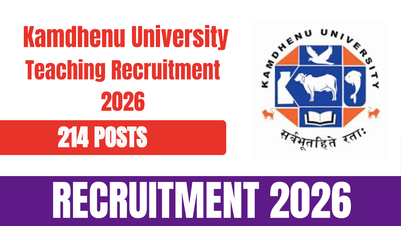 Kamdhenu University (KU) has released an official notification for Kamdhenu University Teaching Recruitment 2026 to fill 214 vacancies for various teaching posts. Eligible and interested candidates can visit the official Kamdhenu University website to check the detailed notification and submit their applications through offline mode within the prescribed time limit.