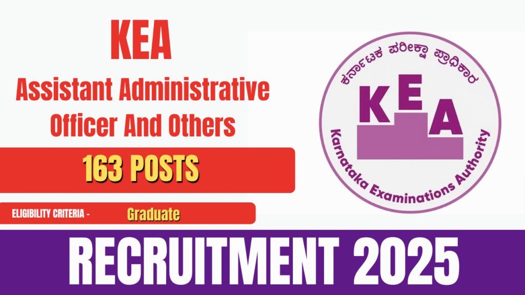 Karnataka Examinations Authority (KEA) Recruitment 2025: Eligibility, Age Limit, Fees, Last Date, Selection Process, Apply Online — The Karnataka Examinations Authority (KEA) has released the official notification for the recruitment of Officers, Managers, and various other posts. This recruitment drive will fill a total of 163 vacancies. All eligible and interested candidates can submit their … Continue reading KEA Recruitment 2025- Apply For Assistant Administrative Officer And Others