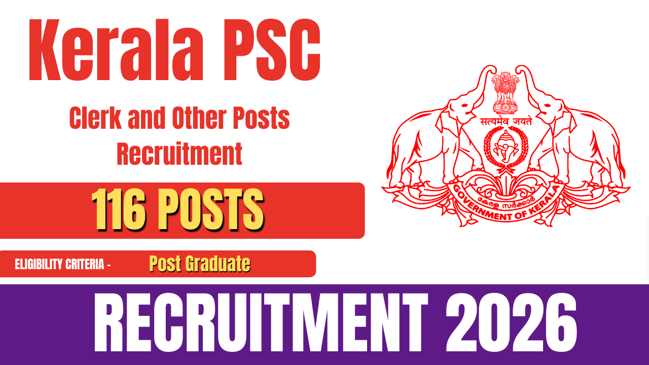 Kerala Public Service Commission (Kerala PSC) has released an official notification for Kerala PSC Clerk and Other Posts Recruitment 2026 to fill 116 vacancies for the posts of Clerk, Lower Division Clerk (LDC), and other positions. Eligible and interested candidates can apply online through the official Kerala PSC website within the prescribed application period.