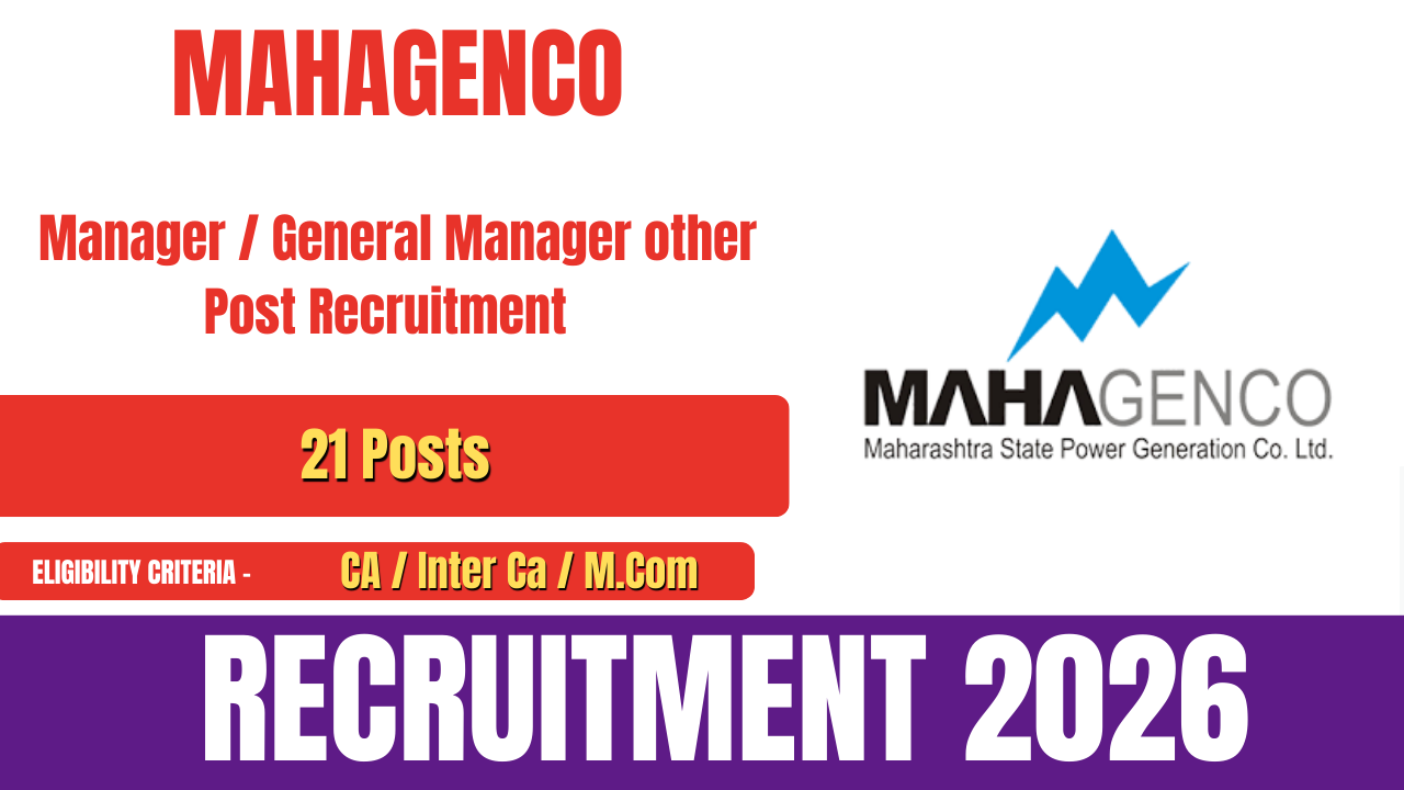 Maharashtra State Power Generation Company Limited has released an official notification for MAHAGENCO Recruitment 2026. The recruitment drive is being conducted to fill 21 vacancies for the posts of Manager, General Manager, and other positions in the Finance & Accounting department. Eligible and interested candidates can submit their online applications through the official MAHAGENCO website.