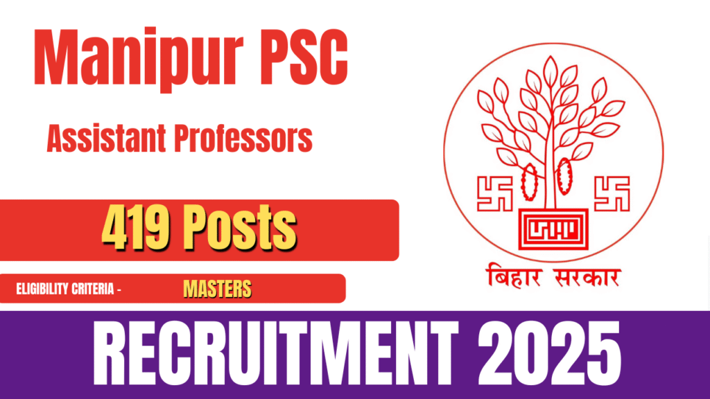 Manipur Public Service Commission (Manipur PSC) has released the official notification for the recruitment of Assistant Professors. A total of 419 posts will be filled through this recruitment drive. Eligible and interested candidates can apply online through the official website of Manipur PSC. The online application process for Manipur PSC Assistant Professor Recruitment 2025 will … Continue reading Manipur PSC Assistant Professor Recruitment 2025- How To Apply