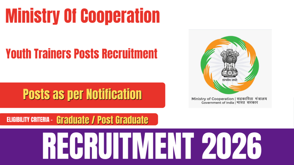 The Ministry of Cooperation has released an official notification for Ministry of Cooperation Interns Recruitment 2026 for the post of Youth Trainers. Candidates who possess a Bachelor’s or Master’s degree from a recognized university in India are eligible to apply. Interested and eligible applicants can submit their applications online through the official website of the … Continue reading Ministry of Cooperation Interns Recruitment 2026- How to Apply