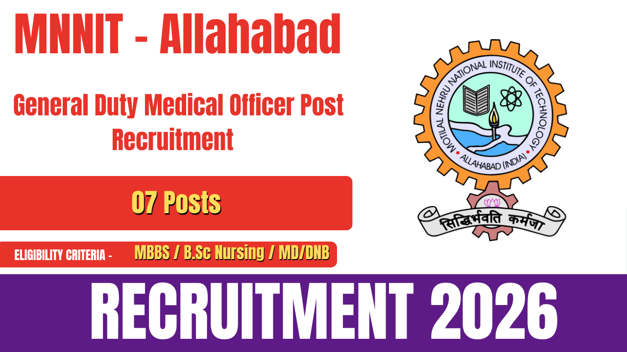 Motilal Nehru National Institute of Technology Allahabad (MNNIT) has released an official notification for the recruitment of General Duty Medical Officers (GDMOs), Staff Nurses, and Part-Time Specialist Doctors on a contract basis. A total of 07 vacancies will be filled under this recruitment drive. Eligible and interested candidates can apply through the offline mode as per the instructions provided in the official notification.