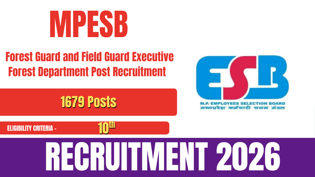 Madhya Pradesh Employee Selection Board (MPESB) has released the official notification for MPESB Van Rakshak, Jail Prahari Recruitment 2026. This recruitment drive includes vacancies for Forest Guard and Field Guard (Executive) under the Forest Department, as well as Jail Guard (Executive) and Jail Superintendent under the Jail Department. A total of 1,679 posts have been announced.