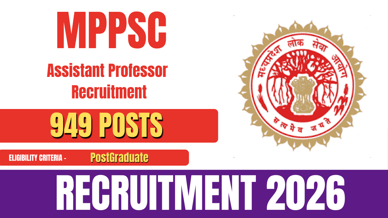 MPPSC has released the official notification for the recruitment of Assistant Professor posts. A total of 949 vacancies have been announced. All eligible and interested candidates can fill out the application form online by visiting the official website of MPPSC.