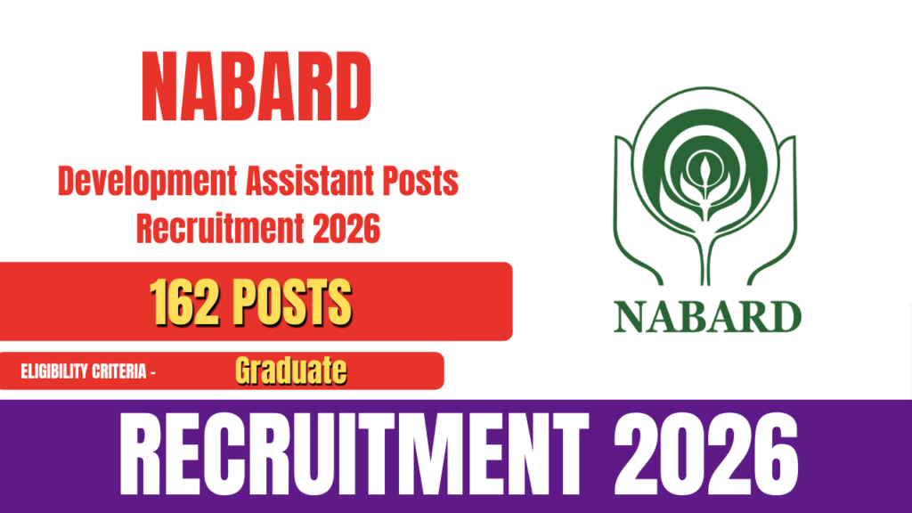 National Bank for Agriculture and Rural Development (NABARD) has released an official notification for the recruitment of Development Assistant posts. A total of 162 vacancies have been announced under this recruitment. Candidates holding a graduate degree are eligible to apply. Interested and eligible applicants can submit their applications online through the official website of NABARD. … Continue reading NABARD Development Assistant Recruitment 2026- How to Apply