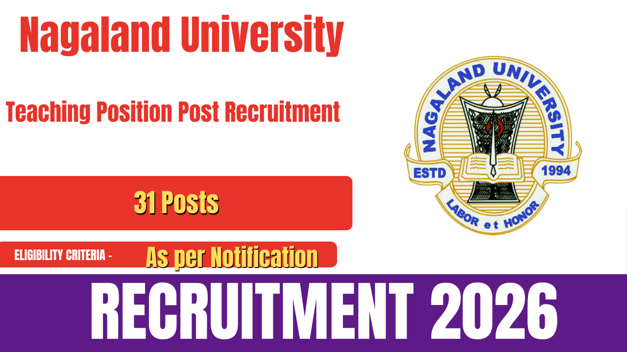 The Nagaland University Teaching Recruitment 2026 notification has been officially released for the appointment of teaching staff. Nagaland University is conducting this recruitment drive to fill a total of 31 teaching vacancies.