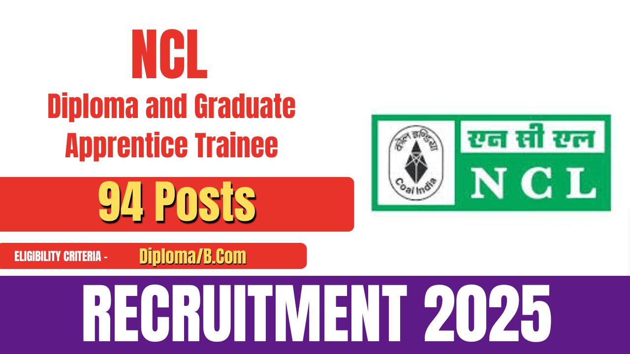 Northern Coalfields Limited (NCL) has released the official notification for the recruitment of Diploma and Graduate Apprentice Trainee posts. This recruitment drive aims to fill a total of 94 vacancies.